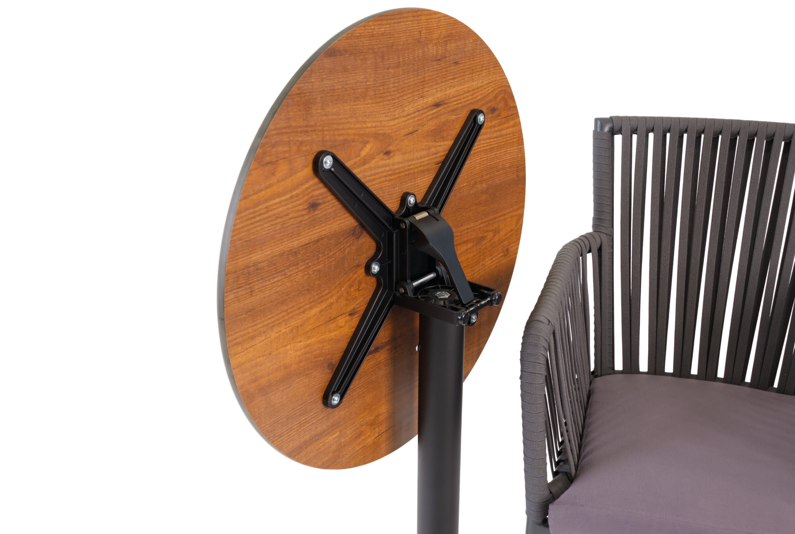 Materijal: Postolje Labin izrađeno je od aluminija i čelika u praškasto lakiranoj crnoj boji. Stub prečnika 7,6 cm povezuje gornji krst prečnika 48,5 cm za pričvršćivanje ploče stola. Materijali su otporni na rđu i jednostavni za čišćenje. Pogodno za unutrašnju i vanjsku upotrebu.
