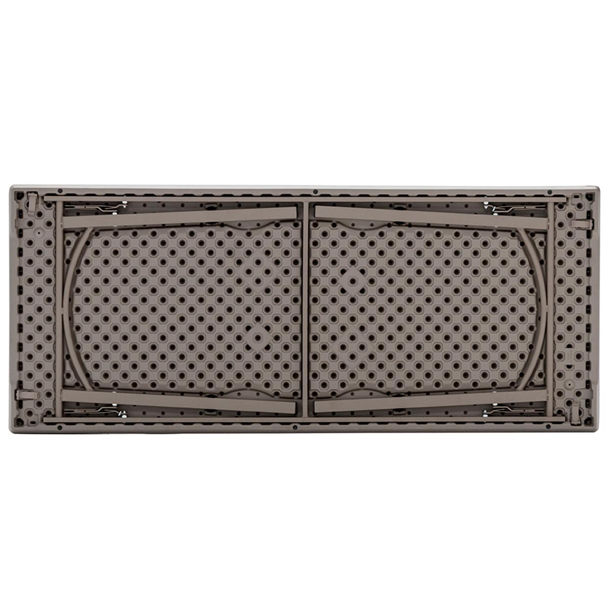 Materijal: Ploča stola je izrađena od visokog gustinskog polietilena (HDPE), što obezbjeđuje trajnost i otpornost na vremenske uticaje. Metalna osnova je prašno obojena, što povećava otpornost na habanje i koroziju.