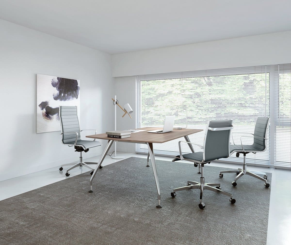 Dizajnirana je sa visokokvalitetnim naslonima za ruke od aluminijuma i 5-krakom aluminijumskom bazom sa točkićima Ø50 mm. Podesiva visina omogućava prilagođavanje korisniku, dok koljeni klackajući mehanizam omogućava zaključavanje u više položaja i jednostavno podešavanje napetosti naslonjala. Ugrađen je i sistem za sprečavanje iznenadnog otpuštanja.