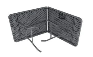 Materijal: Ploča stola je izrađena od 100% čistog visokogustinskog polietilena (HDPE), što osigurava izdržljivost i otpornost na vremenske uticaje. Metalna konstrukcija je obložena prahom, što povećava otpornost protiv habanja i korozije.