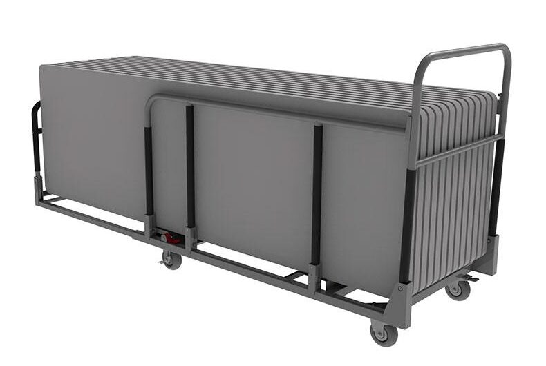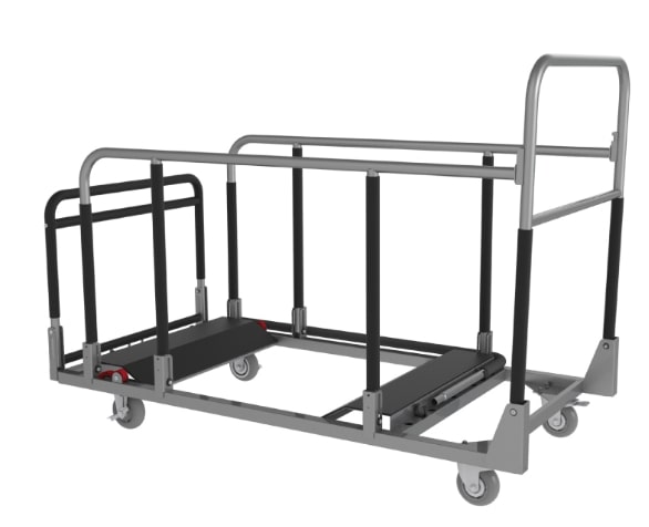 Višenamjenski vozić za prevoz catering stolova, MultiTrolley. Okvir vozića je metalni, djelomično sklopiv, točkovi s kočnicama. Težina praznog vozića je 51 kg, max. opterećenje do 370 kg. službenu web stranicu proizvođača vozića Multi trolley možete pogledati ovdje, tehnički list za vozić Multitrolley pogledajte ovdje, uputstva za montažu vozića pogledajte ovdje, katalog vozića pogledajte ovdje.